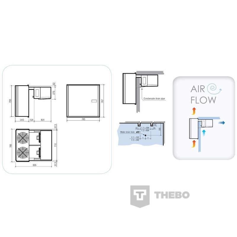 - In verband met de afmetingen van de cel passen de deur en vriesmotor mogelijk niet in alle gevallen naast elkaar. Overleg met een van onze experts wat de beste plaats is voor de motor. Dus de indeling van de cel als afgebeeld kan in bepaalde gevallen in de praktijk niet mogelijk zijn.